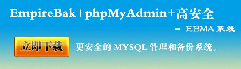 | 答:“EmpireBak+phpMyAdmin+高安全”整合包就是EBMA系統(tǒng)、開源免費(fèi)。字母取自“Empire”的E、“Bak”的B、“My”的M、“Admin”的A。 |