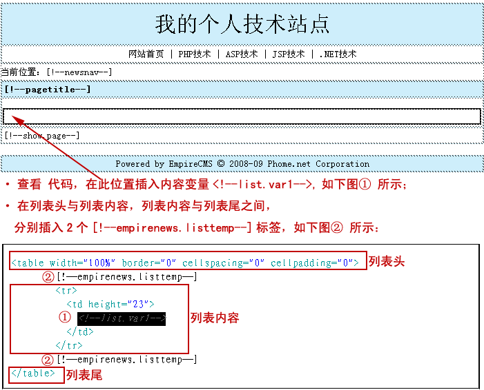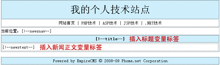 | ·適用于想使用EmpireCMS建站的用戶; | ·網站共設4個欄目:PHP技術、ASP技術、JSP技術、.NET技術。 | |