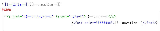 | 標簽格式:[phomenews]欄目ID/專題ID,顯示條數,標題截取數,是否顯示時間,操作類型,是否顯示欄目名,'時間格式化'[/phomenews] | ||||||||||||||||||