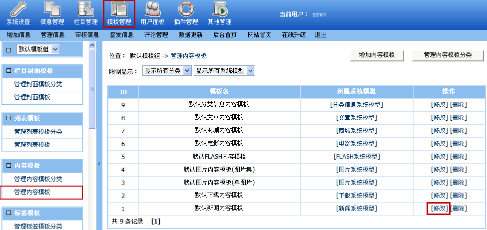| ·Dreamweaver(制作網站模板時使用) | ·系統模型:使用內置的新聞系統模型。 |