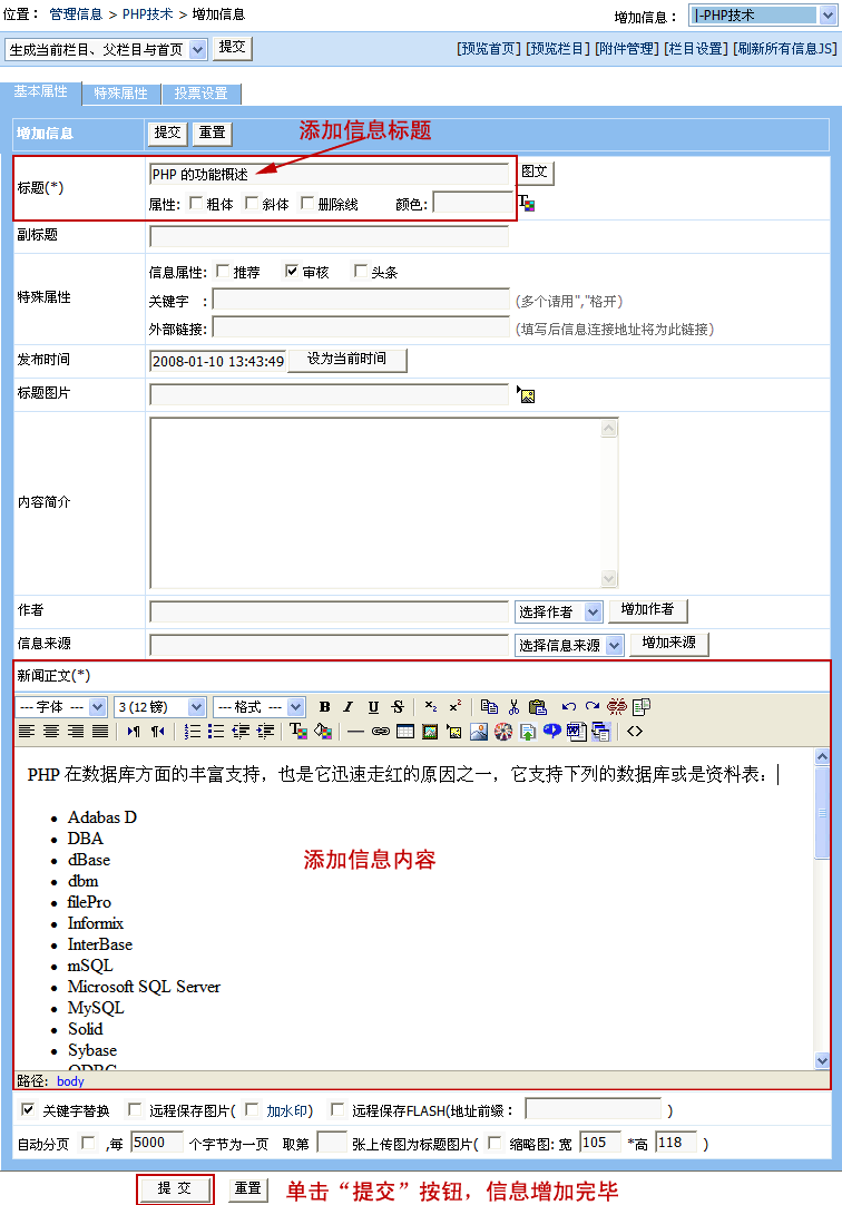 | 工具: | ·內容頁:每條信息的內容頁面顯示樣式:標題,新聞正文。 | |