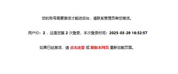 六、登錄者刷新提示登錄需激活網頁,完成后臺登錄。提示如下圖: