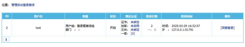 管理員確認登錄用戶ID、用戶名、登錄次數、登錄時間、登錄IP等信息,如果沒有問題,點擊“同意登錄”,然后通知登錄者刷新網頁就可以登錄成功。