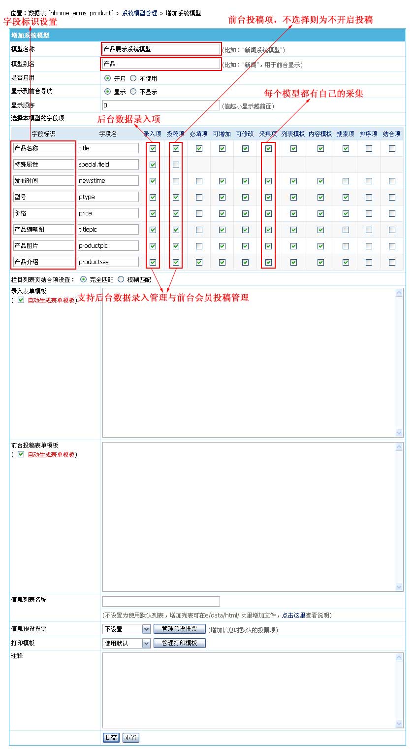 | 說明:每個系統(tǒng)模型都可以有自己的“后臺信息發(fā)布與管理”、“前臺會員投稿與管理”與“信息采集”。 |