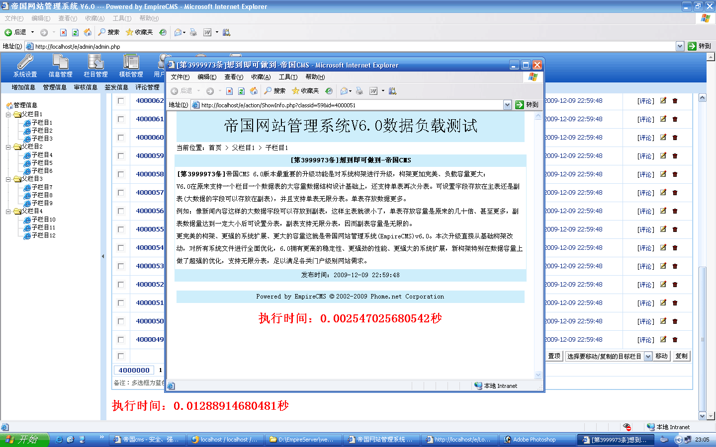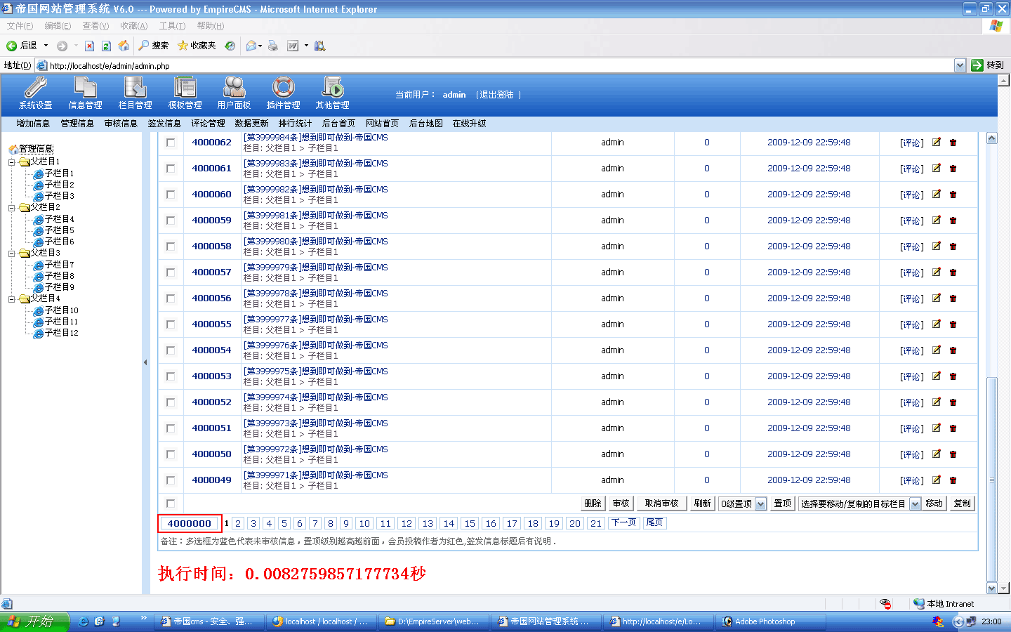 單表無論是50萬還是400萬后臺管理信息列表速度為:0.009秒