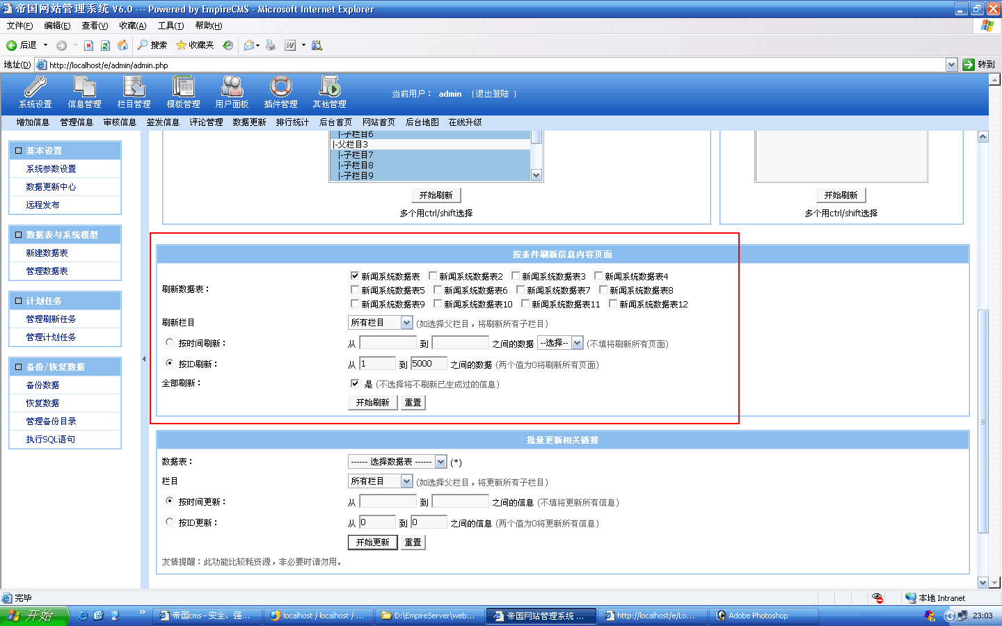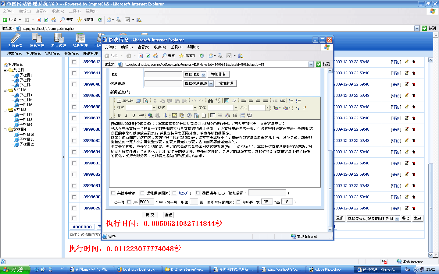 6.0在大數據下的優勢非常明顯,生成內容頁、動態內容頁效率非常之快且不受數據量影響,解決了CMS負載最大的問題,并且使用按表管理信息列表速度很快,單表幾十萬和幾百萬數據沒有明顯區別。
