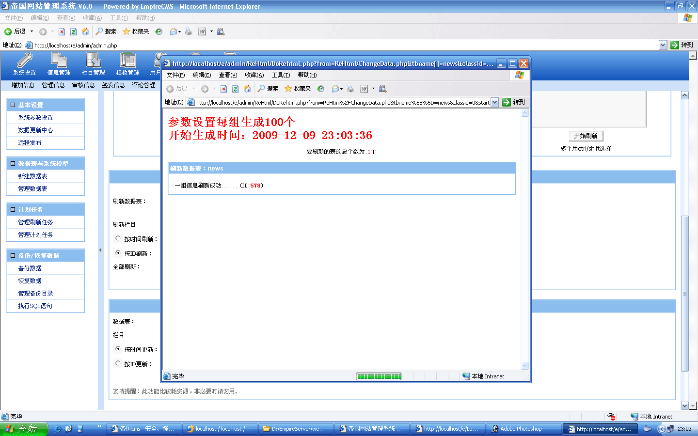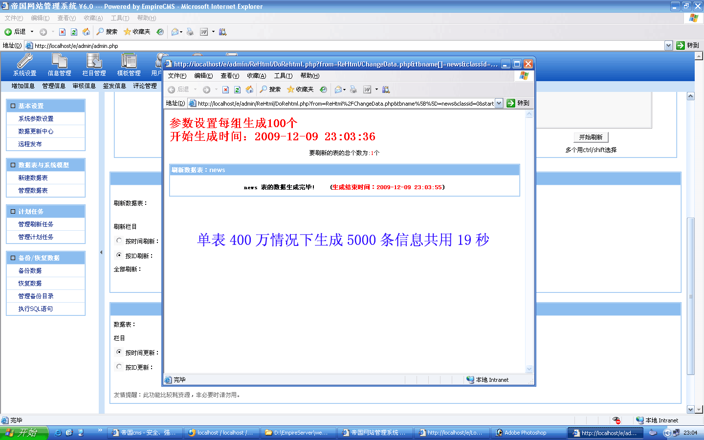 單表無論是50萬還是400萬生成5000個內容頁速度為:19秒