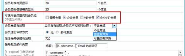 帝國CMS7.5版支持設置某些會員組才能擁有會員空間