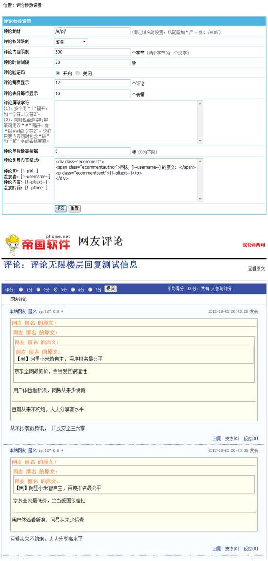 帝國CMS7.0評論新增無限蓋樓功能,更易互動
