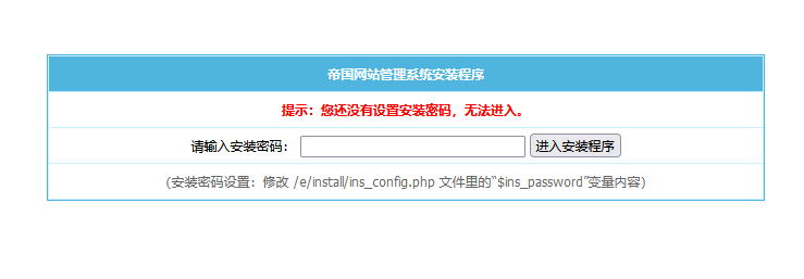 一般來說,程序安裝后就會刪除安裝目錄,但我們考慮到存在極端情況后,帝國CMS8.0版還是對安裝程序進行了升級: 1、安裝程序新增安裝密碼,不設置安裝密碼不讓安裝,更安全。
