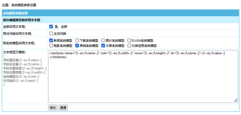帝國CMS8.0版前臺投稿編輯器支持采用多行文本框